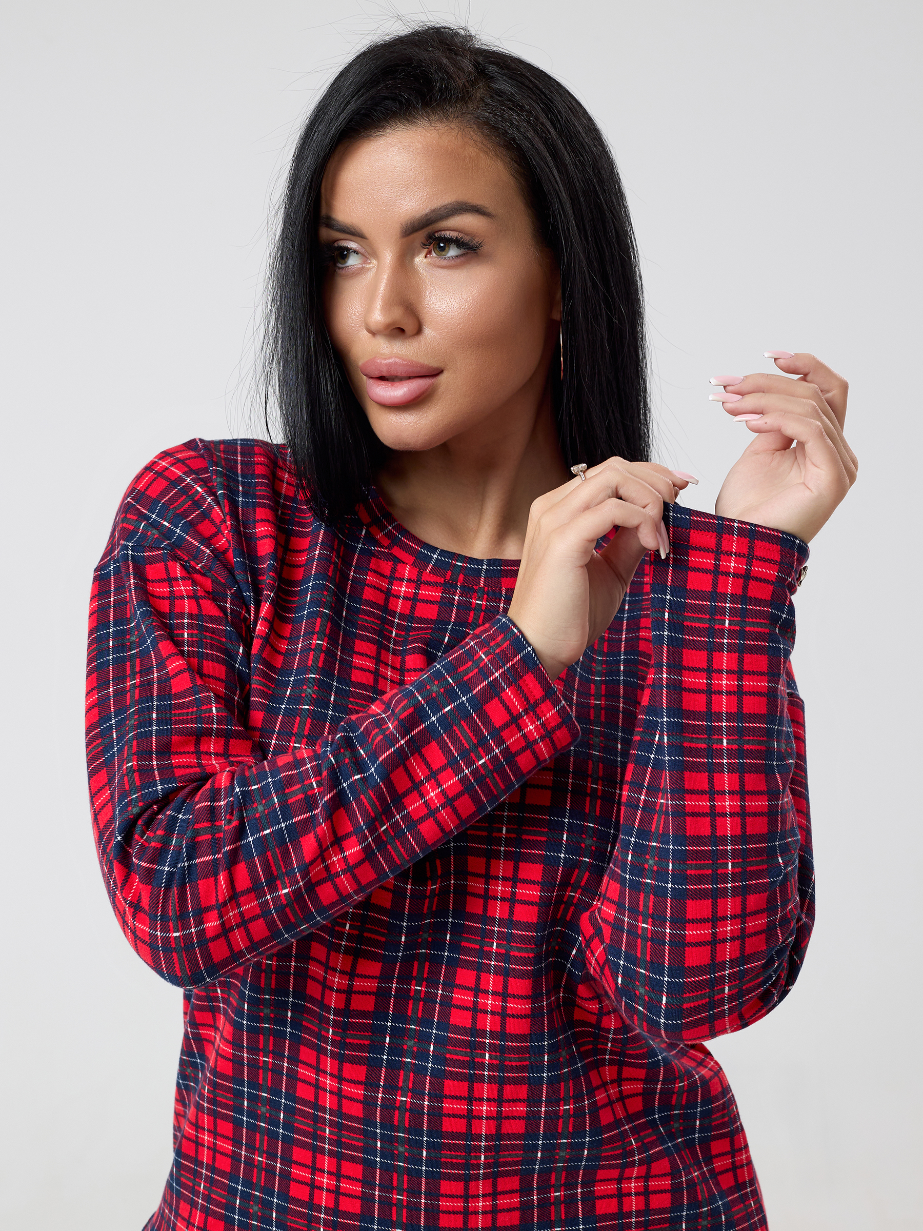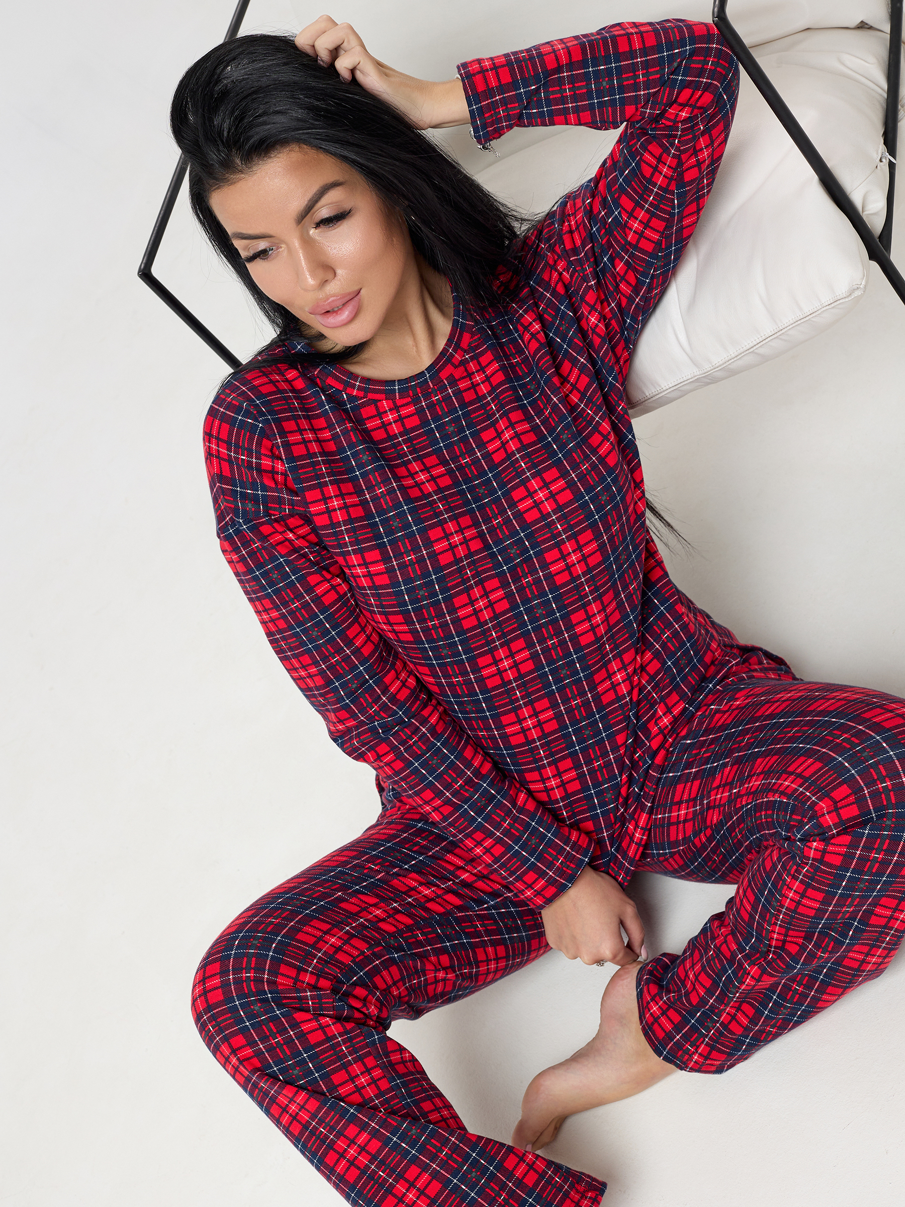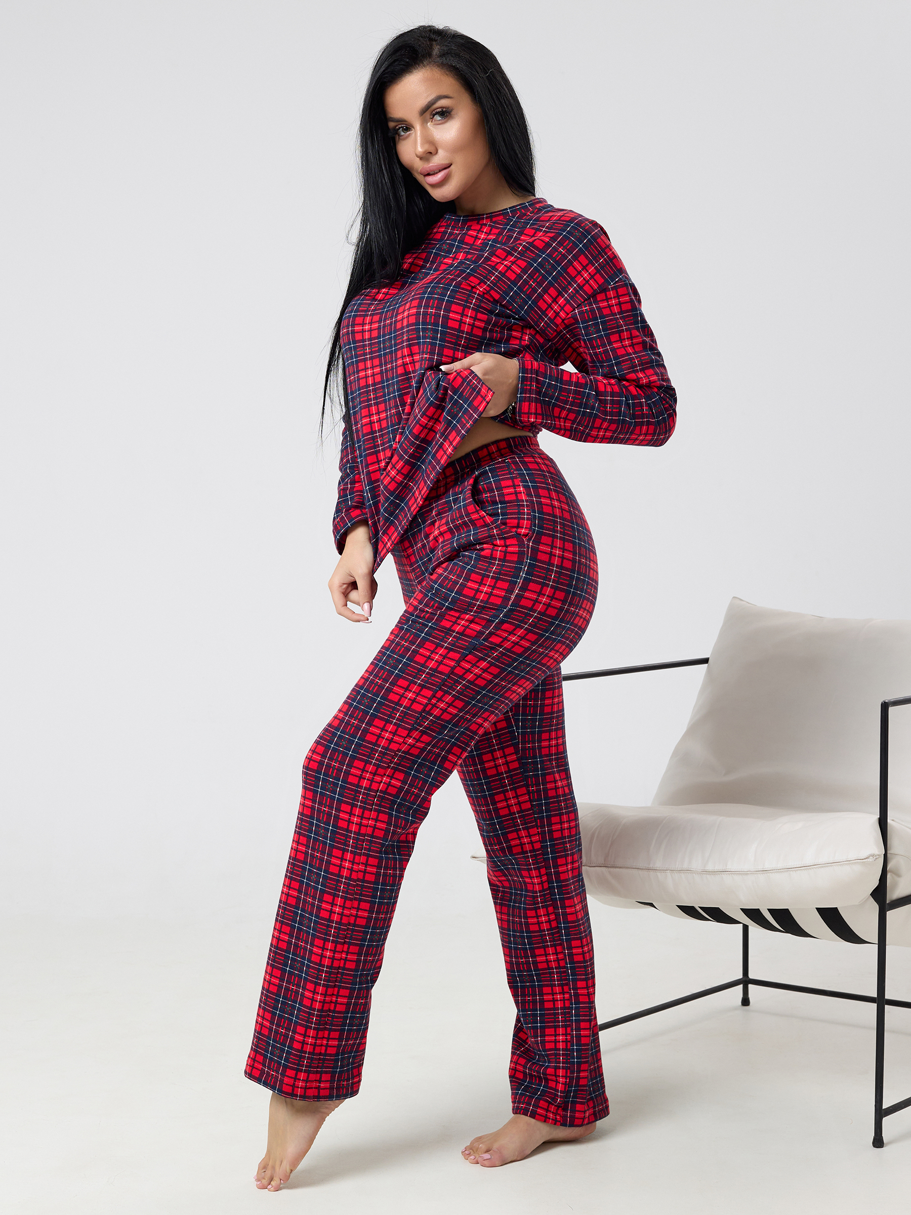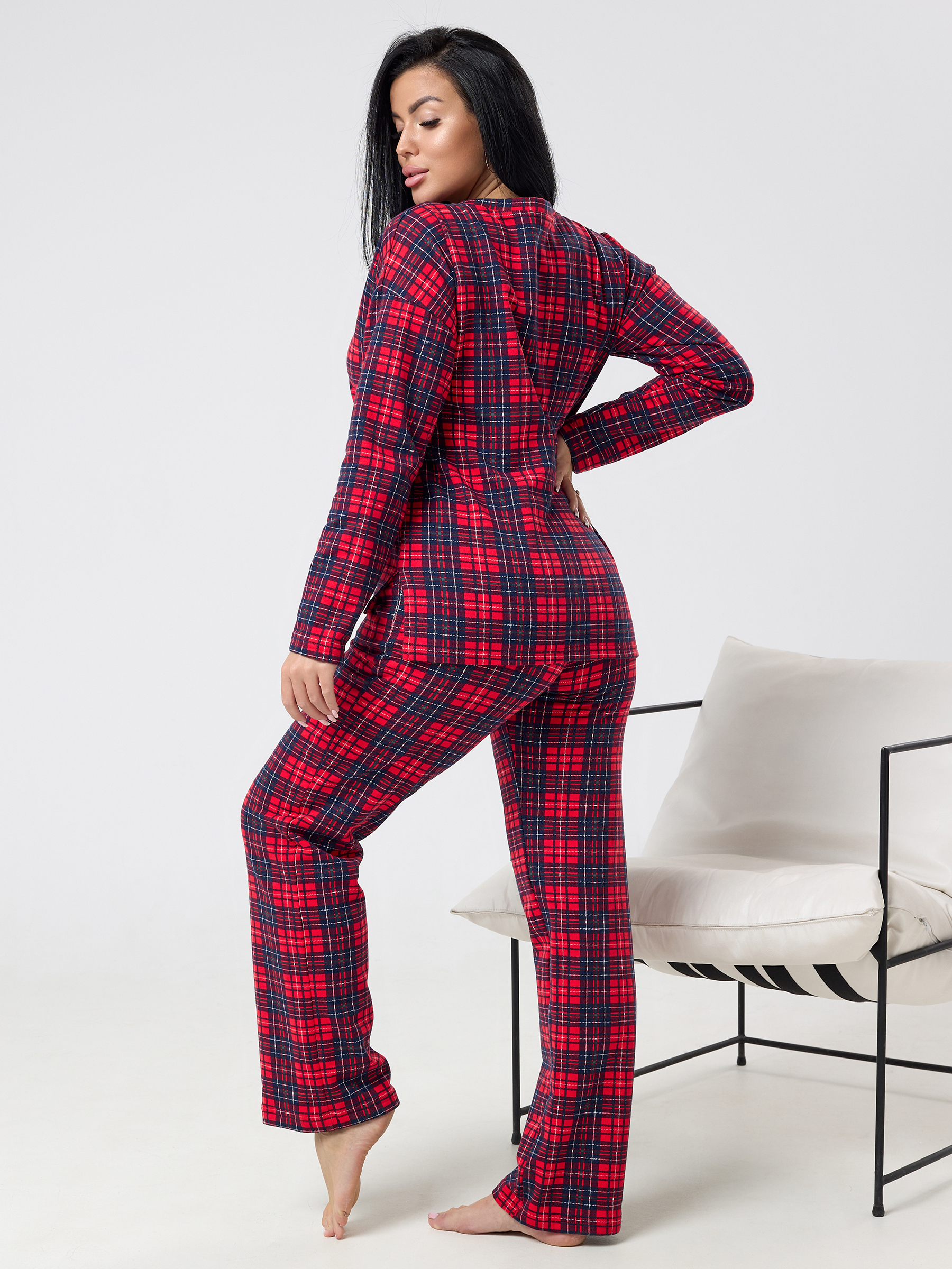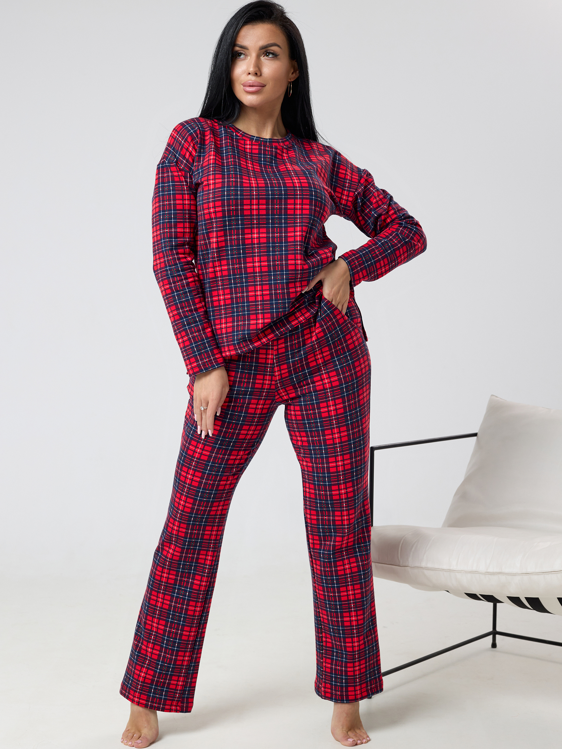 Пижама женская из футера с начёсом Клетка